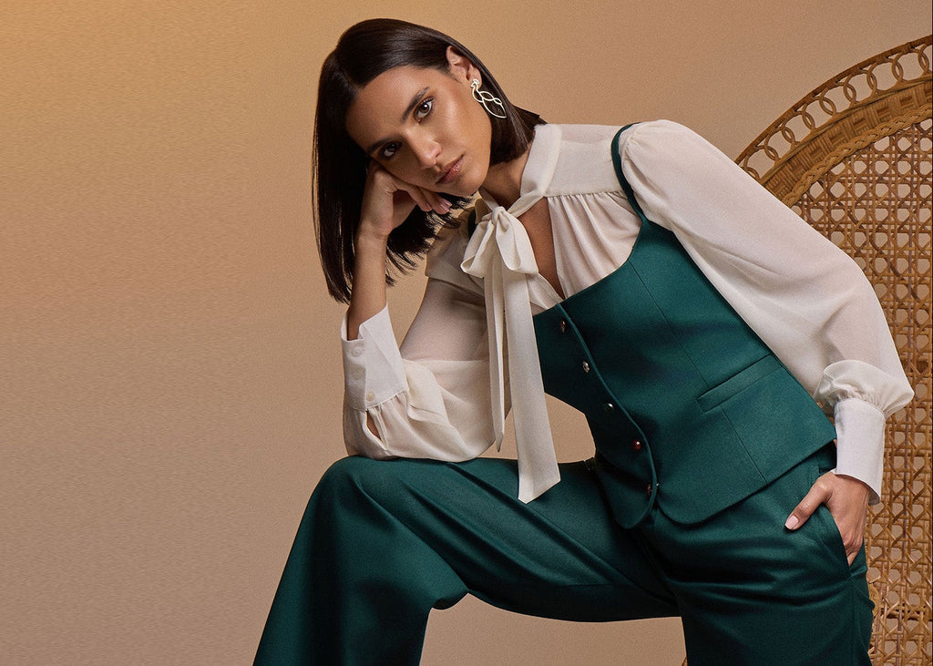 Step into the golden hush of the desert, where the spirit of the West is reawakened in silhouettes that speak in sun-kissed whispers and power-lined poise. Echoes of the West is a sartorial love letter to untamed landscapes and unapologetic femininity — where sharp tailoring meets soft rebellion.