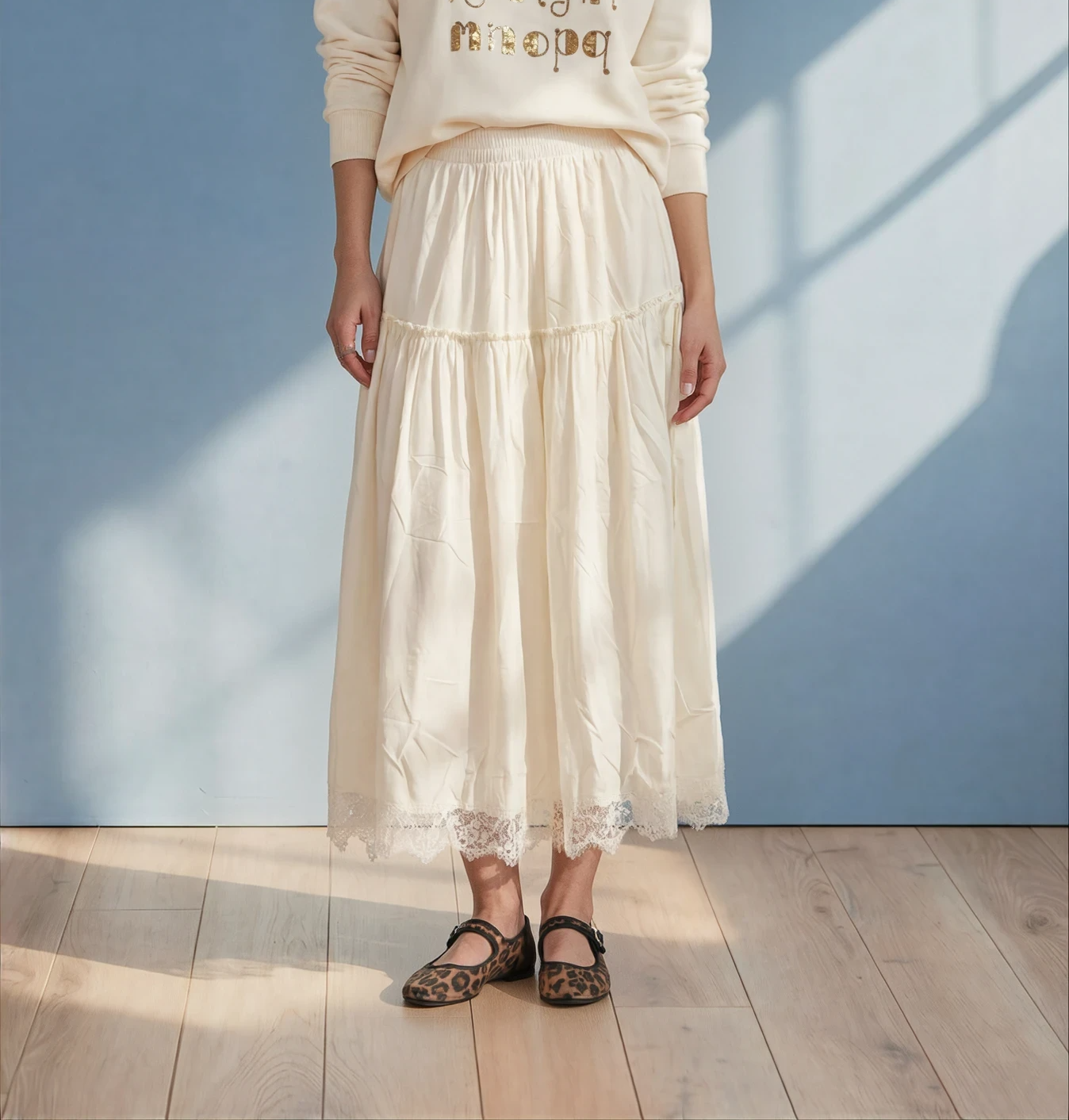 Romantic, flowing, and effortlessly elegant — the Lace-Trim Lilia Skirt is designed to move beautifully with you. Crafted in a soft cream hue, this skirt features delicate gathering with a bow knot and a subtle lace hem that adds a timeless, feminine finish.