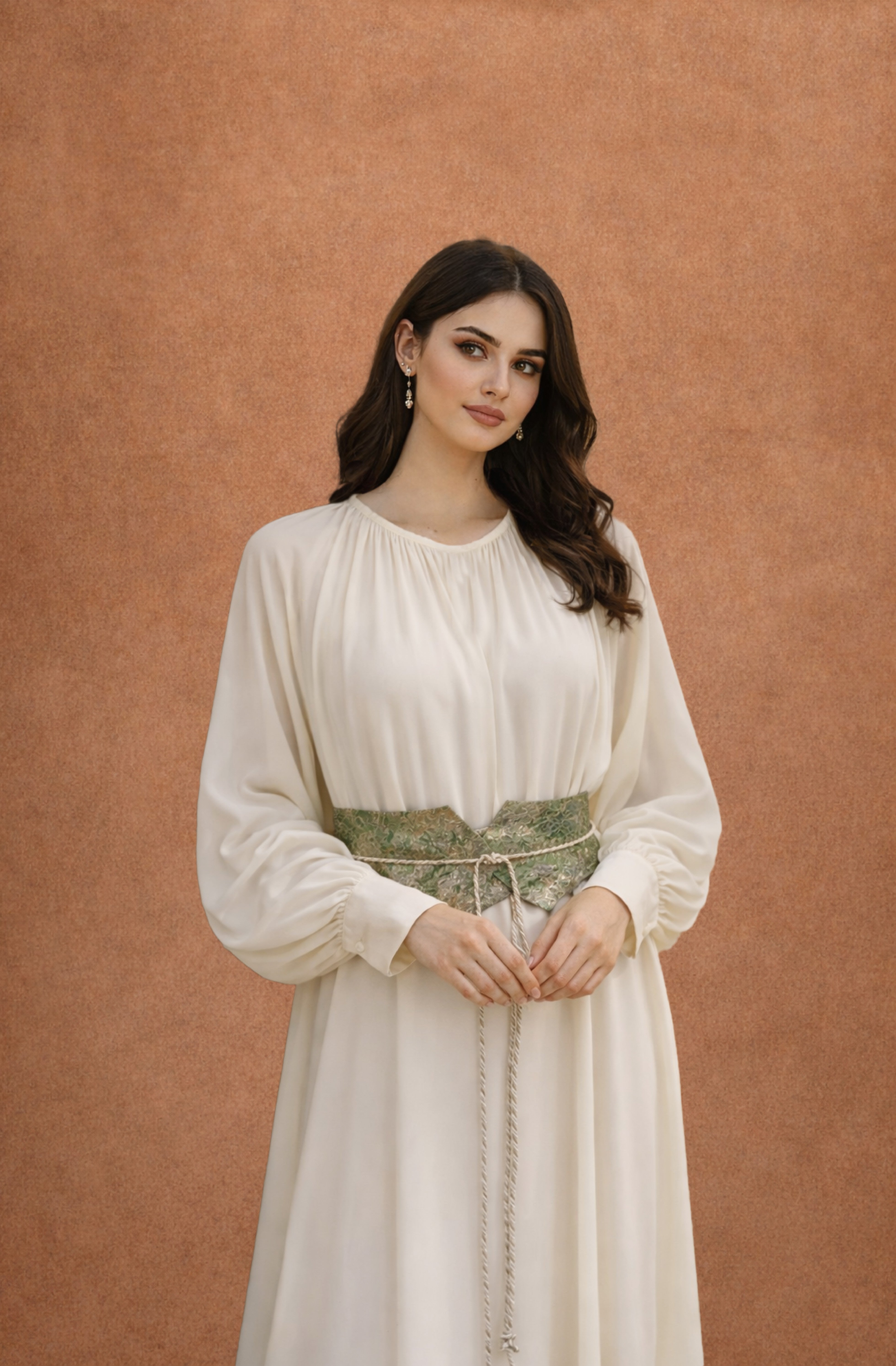 Embodying serene elegance and effortless modesty, our Elina Dress from the Sama Ramadan Collection blends traditional grace with effortless modernity. Designed for comfort and versatility, its relaxed silhouette and belt make it perfect for iftar nights, or special occasions. Lightweight and easy to style, the Elina Dress pairs beautifully with minimalist jewelry or statement accessories, offering a graceful look that moves from day to evening with ease.