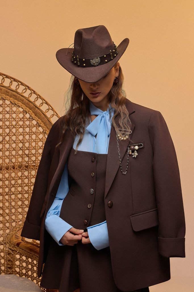 Each jacket comes with a one-of-a-kind, handcrafted brooch and may vary in design and details from the one shown — making your piece truly unique.