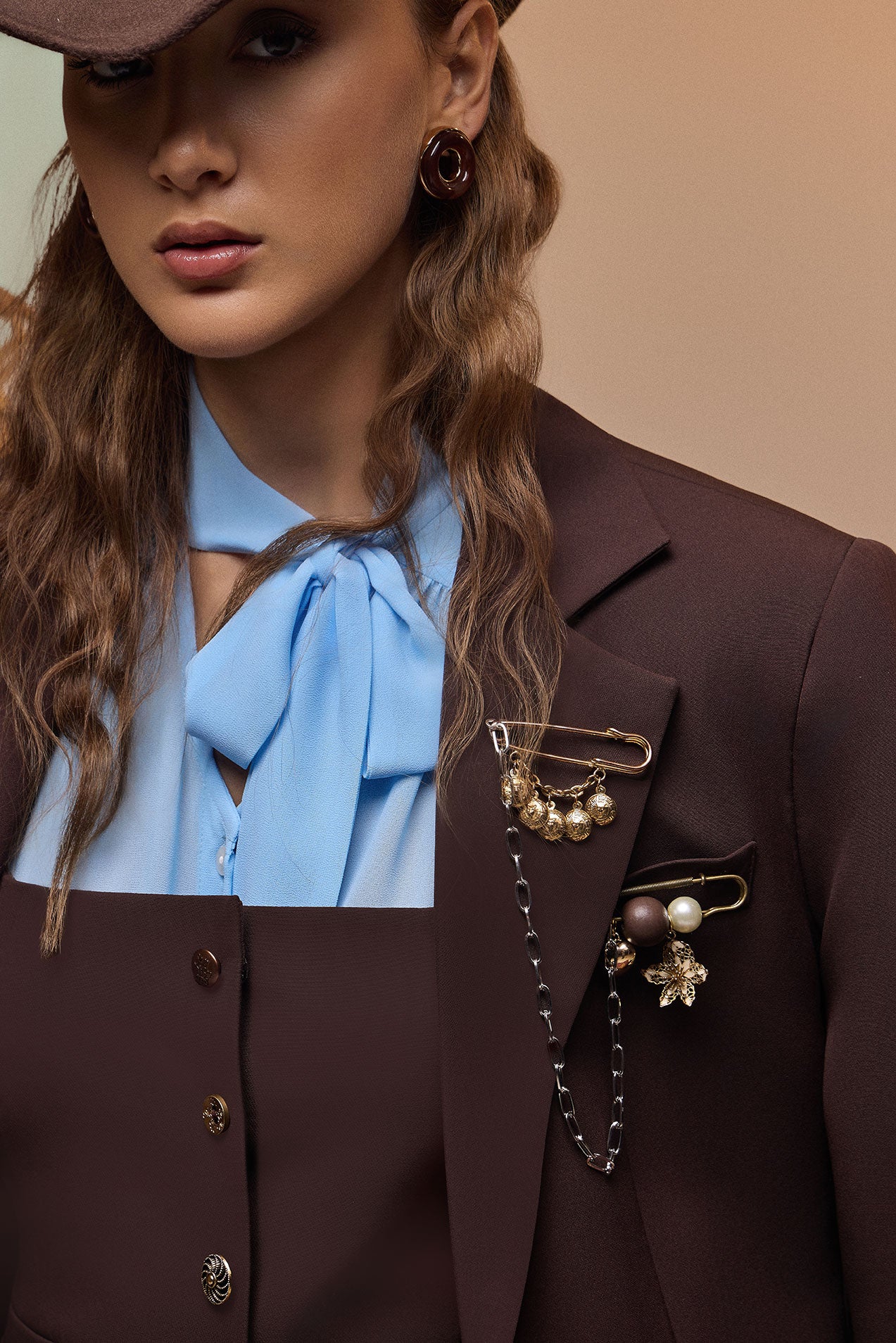 Each jacket comes with a one-of-a-kind, handcrafted brooch and may vary in design and details from the one shown — making your piece truly unique.