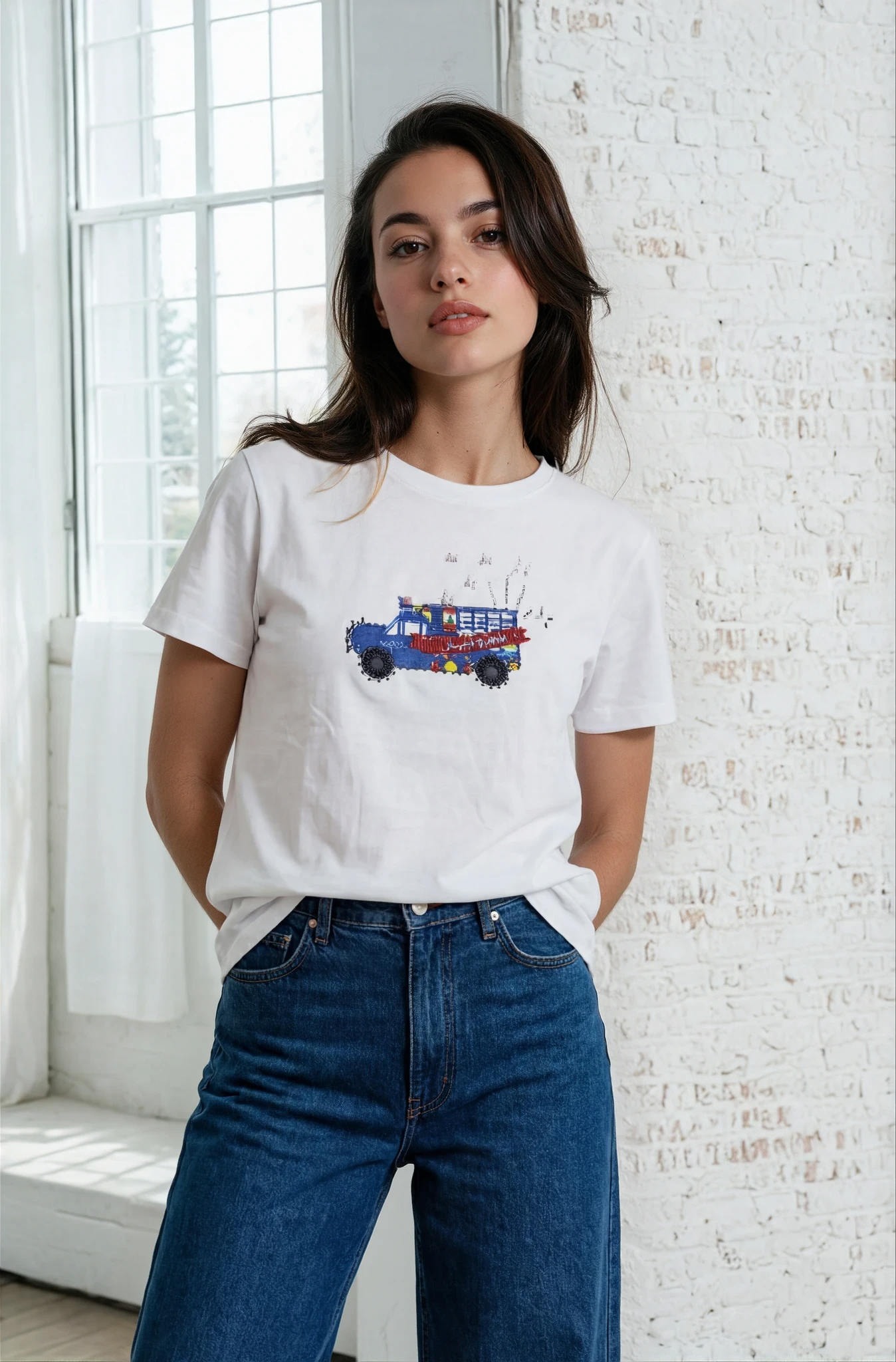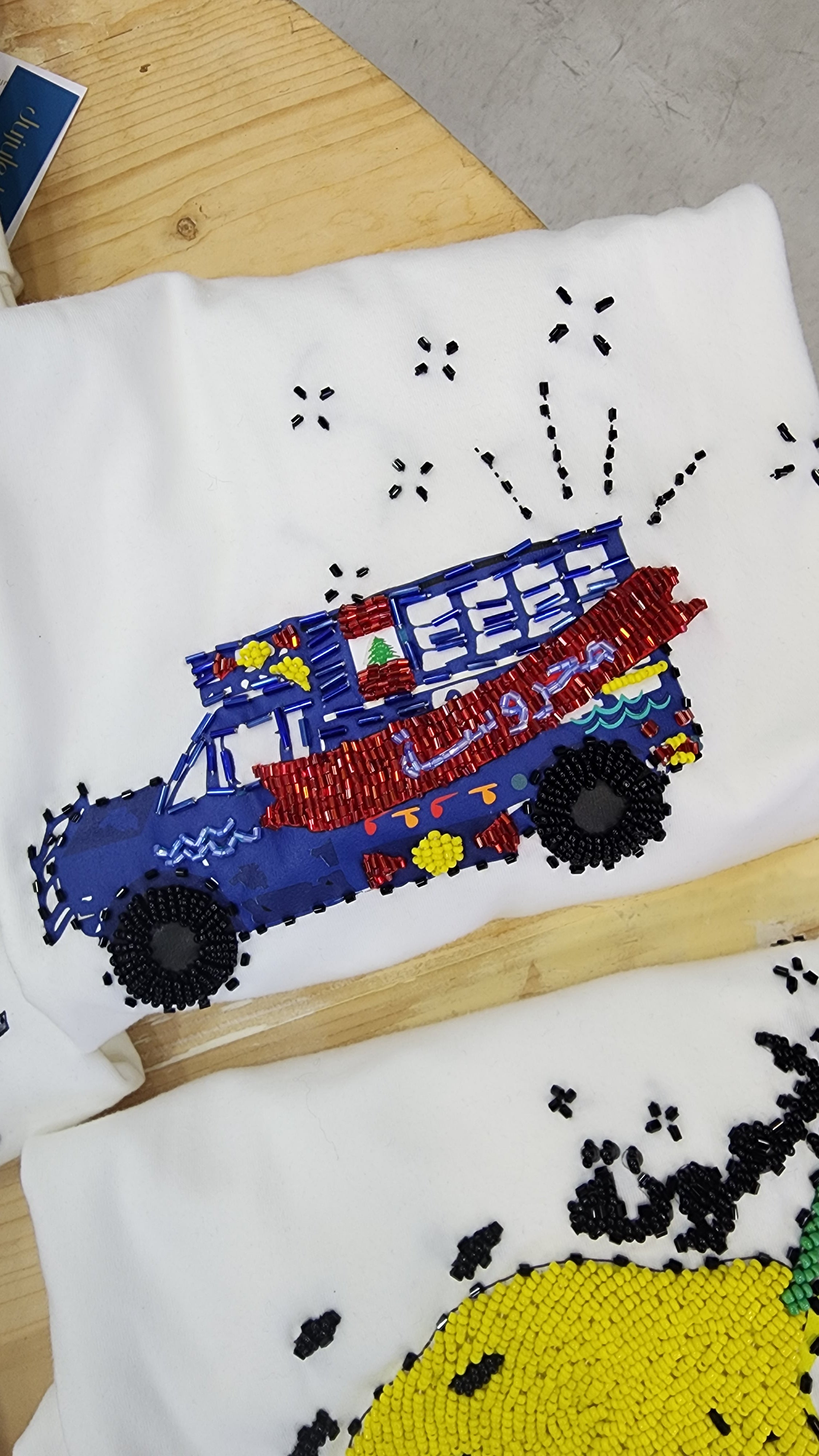 The “Mahrousse” tshirt — Round neck, short sleeve cotton tee lovingly finished with hand‑stitched artwork and the most beautiful beads. Each portrait illustration is a unique, wearable statement that carries a story — identity, confidence and joy woven into every stitch. Lightweight, flattering cut for everyday wear; crafted details make each piece one‑of‑a‑kind.